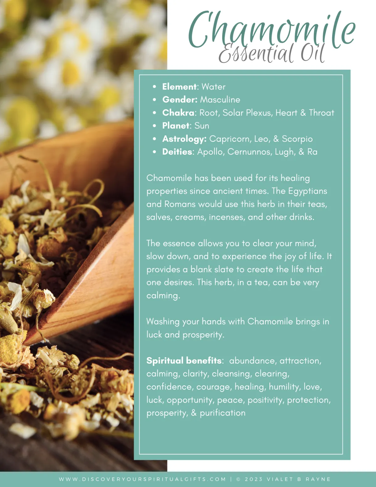 Chamomile – Soothes emotional stress during clearing